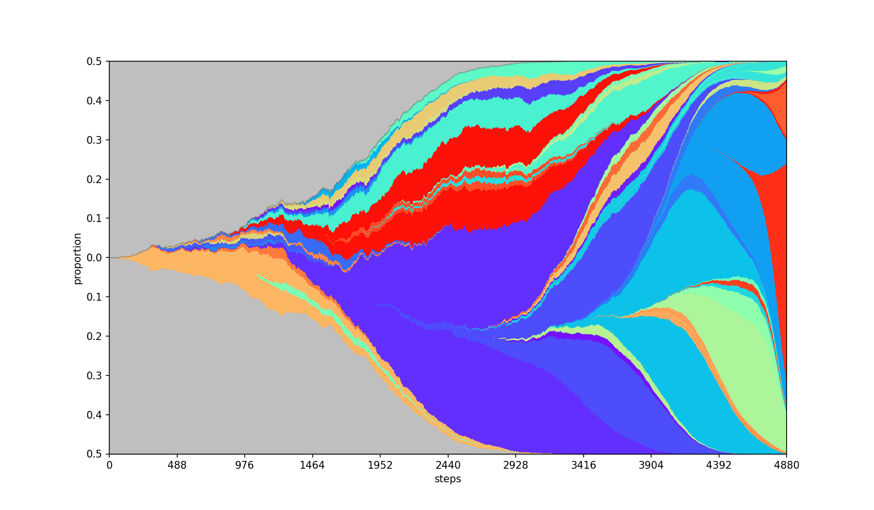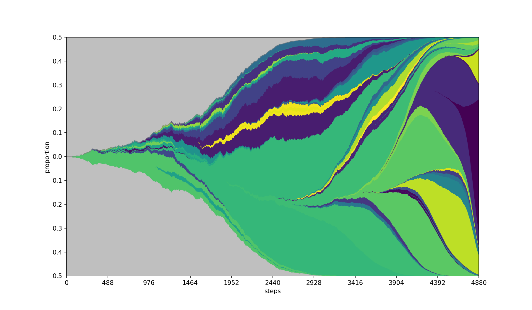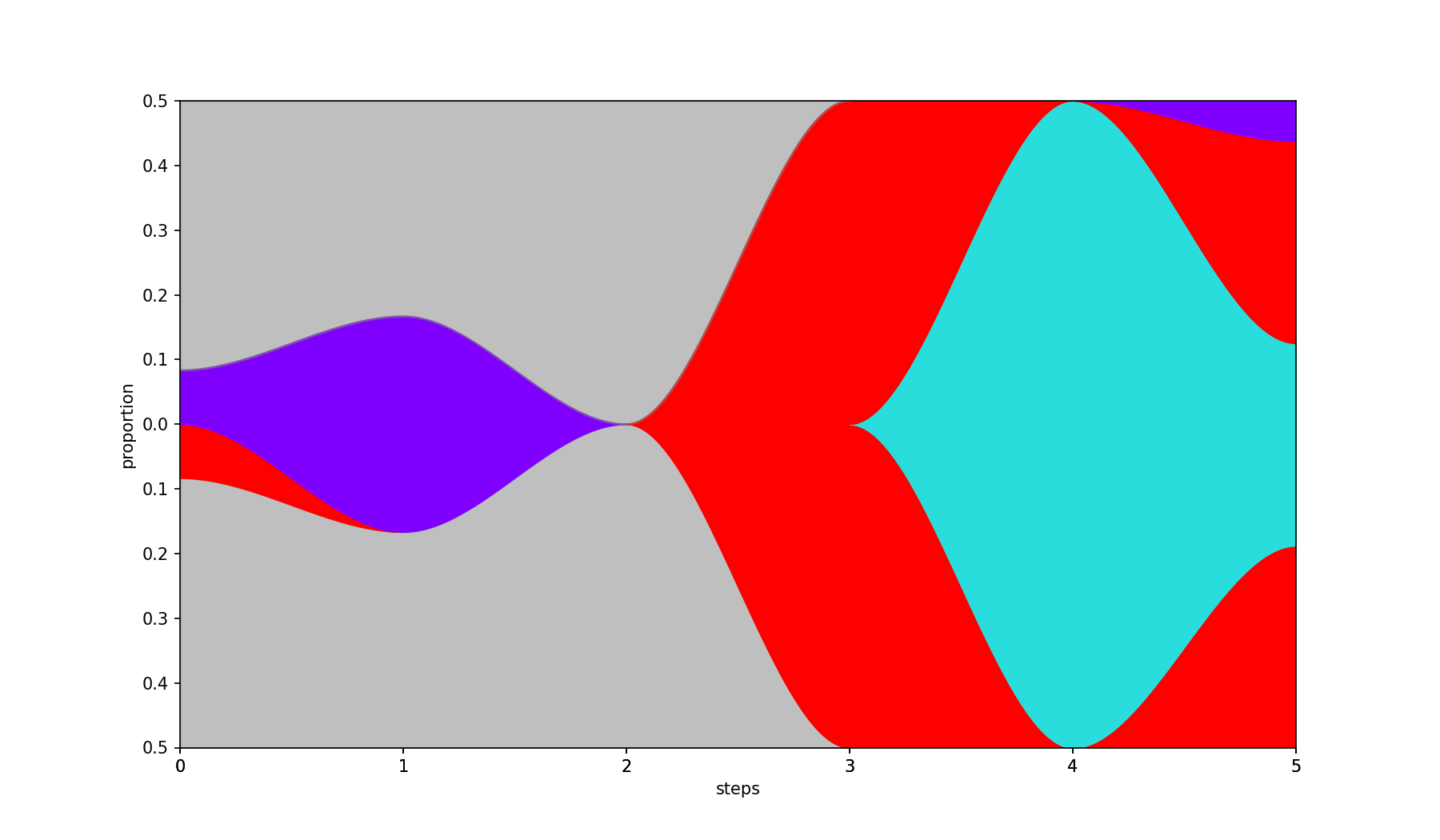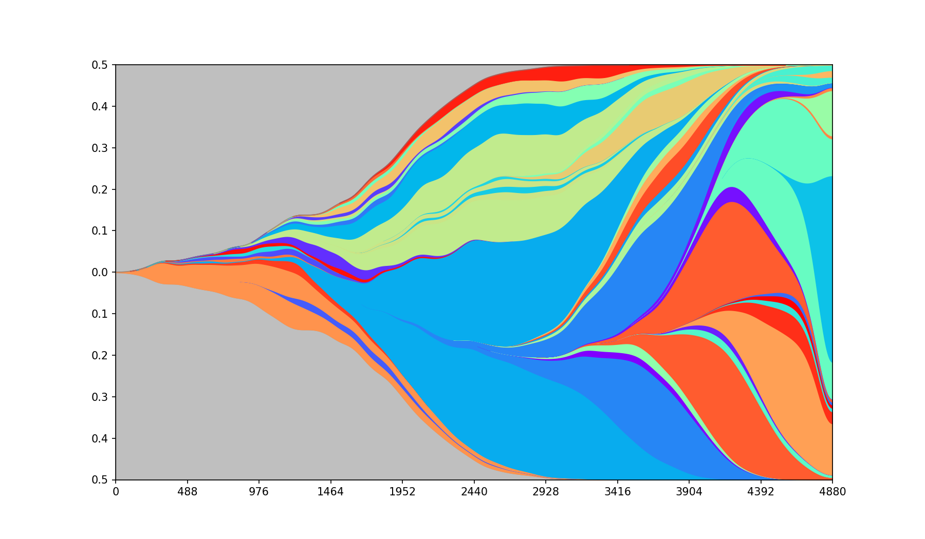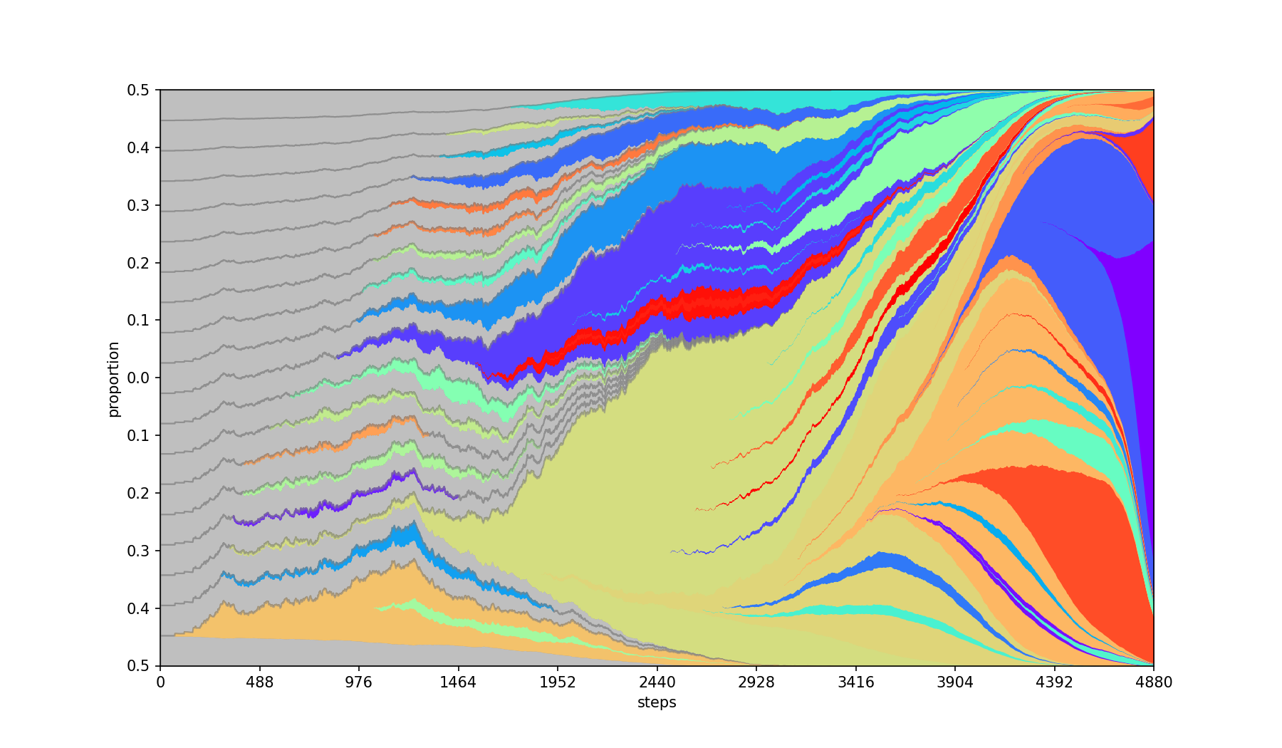 PyFish is a Python 3 package for creation of Fish (Muller) plots like the one below.