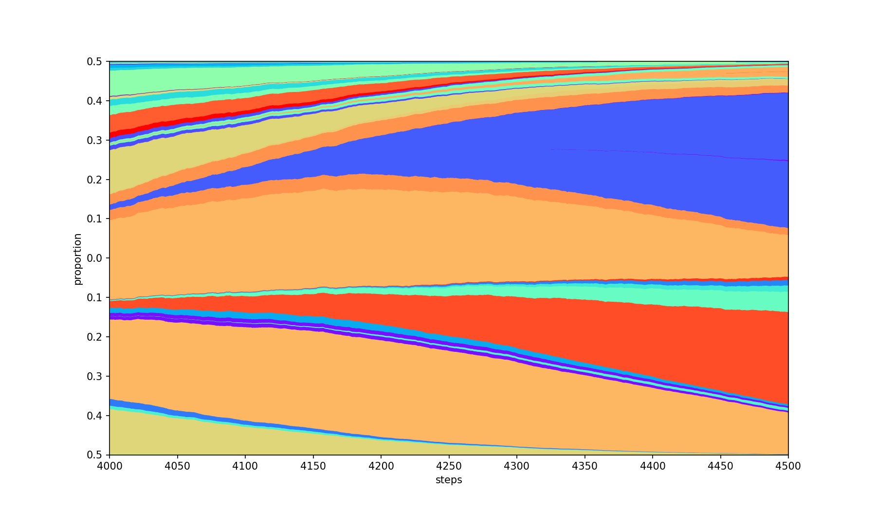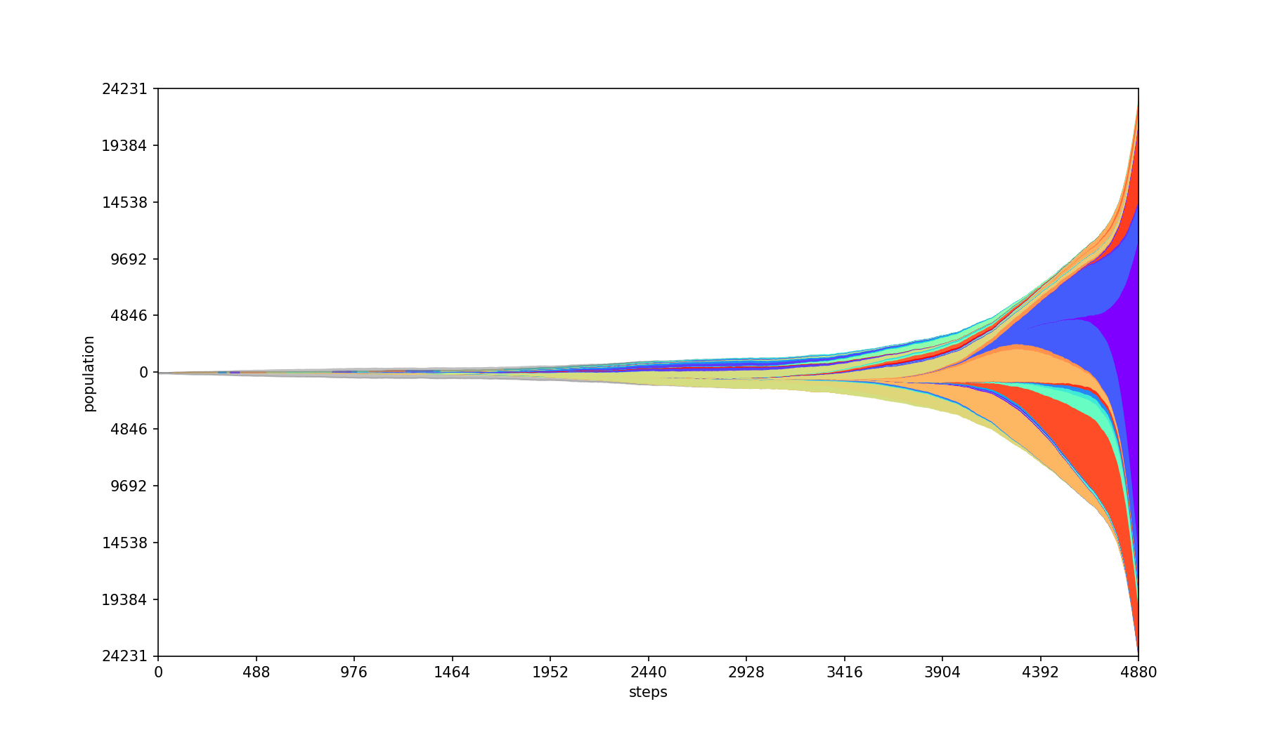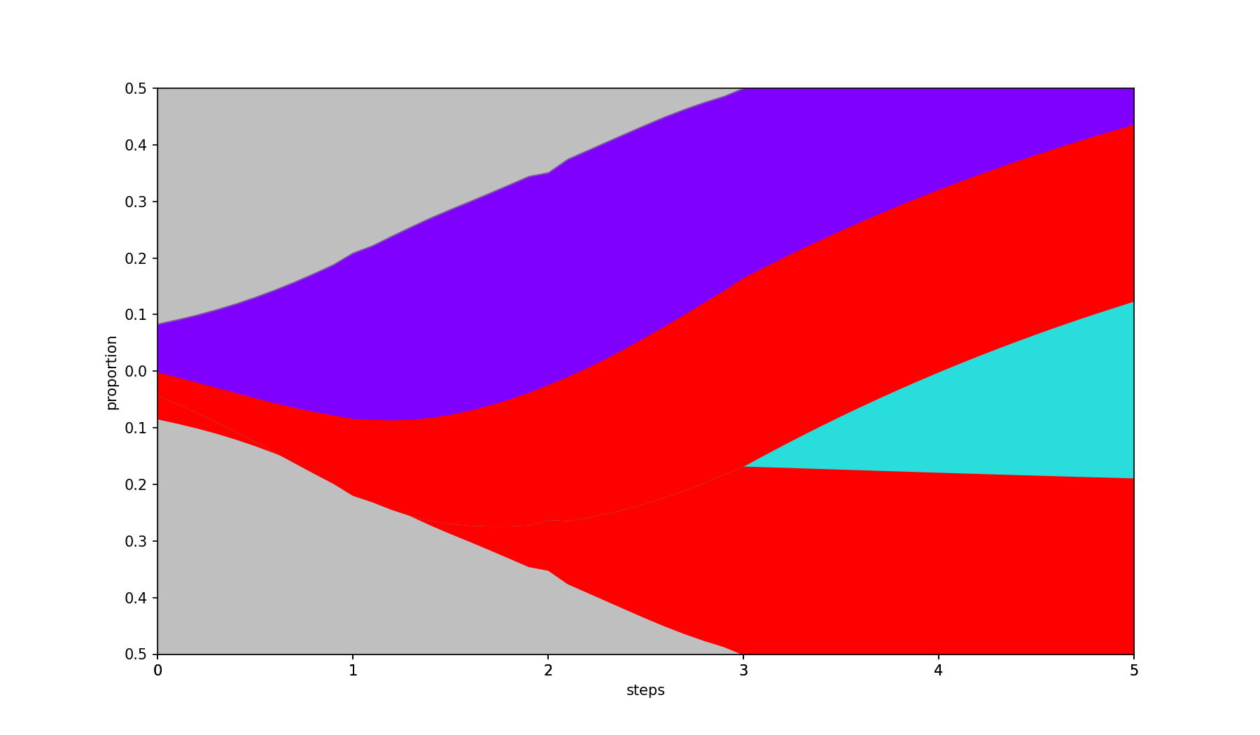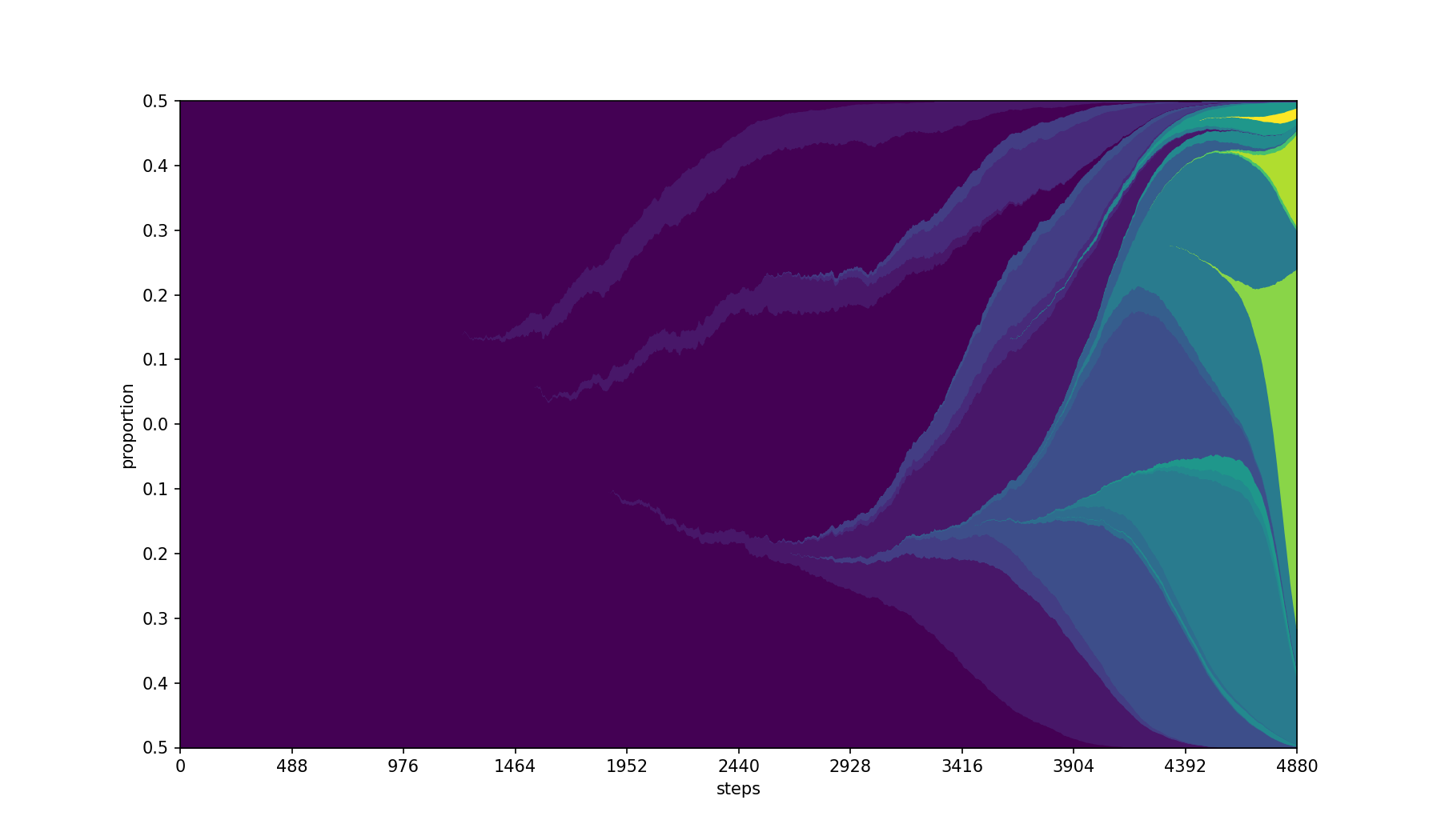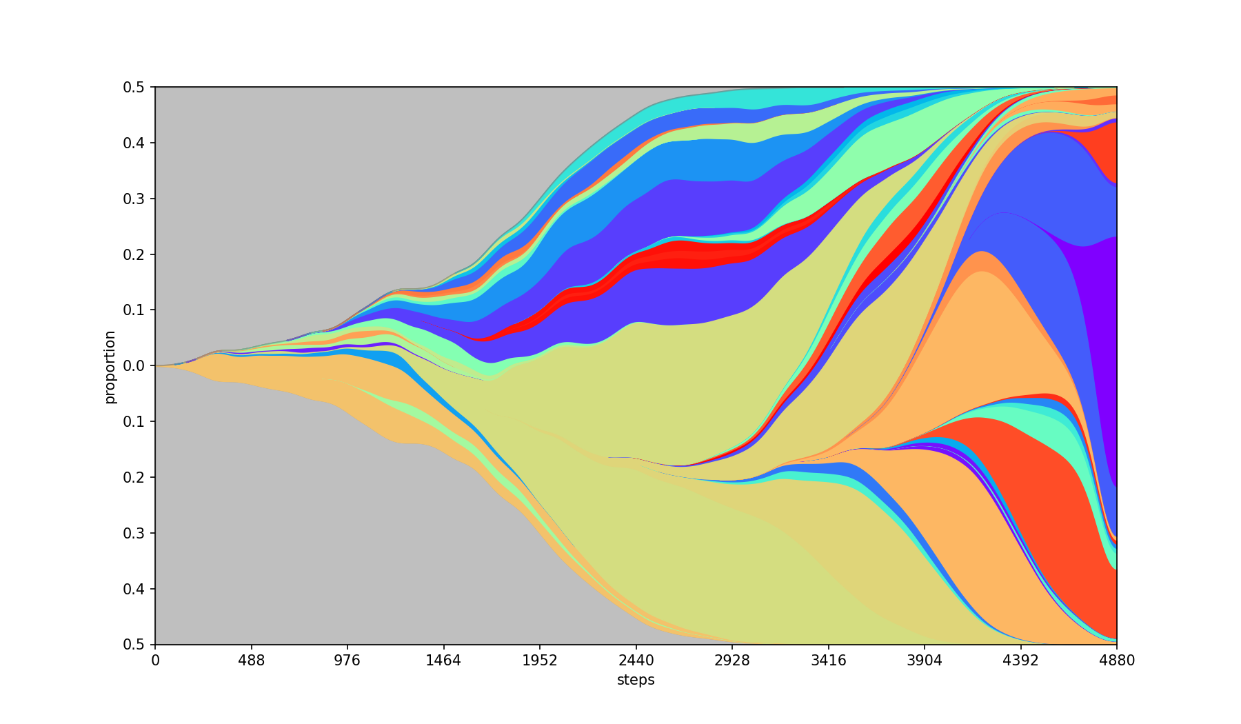 PyFish is a Python 3 package for creation of Fish (Muller) plots like the one below.